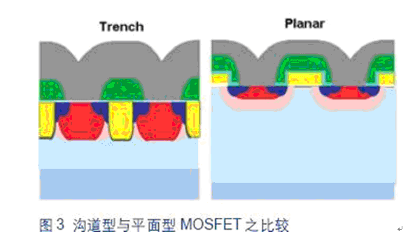 - 在硅片上蝕刻垂直溝道獲得更高的單元密度和更低的導(dǎo)通阻抗