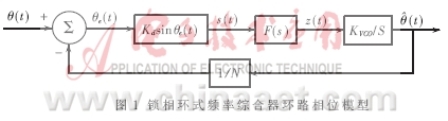 典型的分頻式鎖相環(huán)路包括檢相器(PHD)、電壓控制振蕩器(VCO)、環(huán)路濾波器(LPF)和可編程數(shù)字分頻器(1/N)。圖1是最簡(jiǎn)易的鎖相式頻率合成器的相位模型圖。一個(gè)高精度穩(wěn)定參考信號(hào)fi輸入至檢相器,與1/N分頻后的電壓控振蕩信號(hào)f0/N檢相,產(chǎn)生一個(gè)電平隨兩個(gè)信號(hào)之間的相位的偏差而變化的誤差電壓。經(jīng)過(guò)濾波后誤差信號(hào)作為電壓控制振蕩器的控制電壓,使得壓控振蕩器輸出f0=Nfi。鎖相環(huán)具有高穩(wěn)定度,一旦完成相位鎖定,環(huán)路將會(huì)無(wú)限時(shí)保持鎖定狀態(tài)。如果電壓控制振蕩器頻率發(fā)生偏移,就會(huì)導(dǎo)致控制電壓發(fā)生變化,而這種變化又使得整個(gè)環(huán)路再重新回到鎖定狀態(tài)。同時(shí)由于分頻式設(shè)計(jì),f0的抖動(dòng)Δf經(jīng)N次分頻后到達(dá)檢相器,也降低了對(duì)VCO的穩(wěn)定性要求。通過(guò)改變分頻器分頻比,可以鎖相倍頻在不同的頻率上。分頻鎖相倍頻具有諸多優(yōu)點(diǎn),在高頻率微波信號(hào)發(fā)生器設(shè)計(jì)中廣泛應(yīng)用。
