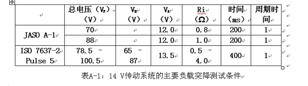 I)負(fù)載突降測(cè)試的規(guī)范和結(jié)果