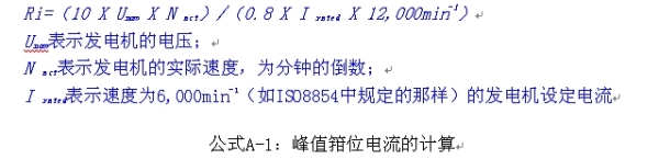 負(fù)載突降狀態(tài)的額定功率是由內(nèi)阻表示的,由該公式得到了一個(gè)發(fā)電機(jī)的內(nèi)阻,如公式A-1所示。