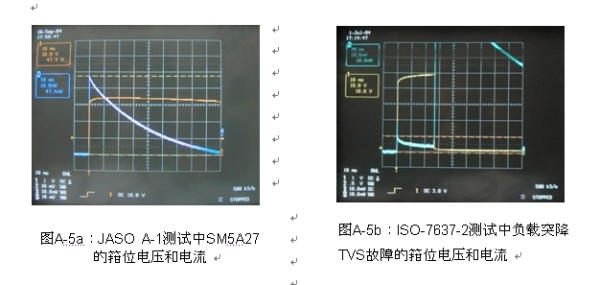 圖A-5a所示為JASO A-1測(cè)試中SM5A27的電流和電壓波形。