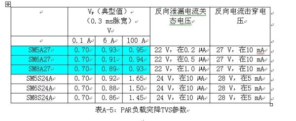 Vishay有兩種類型的汽車電子初級(jí)保護(hù)負(fù)載突降TVS:EPI PARTVS和Non-EPI PARTVS。PAR TVS的產(chǎn)品組列在表A-4當(dāng)中。