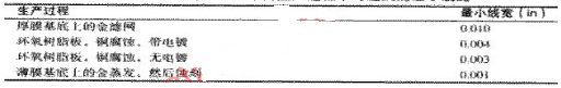 走線寬度上的第二個(gè)不太重要的限制來自生產(chǎn)制造過程。表1列出了在各種不同的生產(chǎn)過程中可達(dá)到的最小走線寬度。