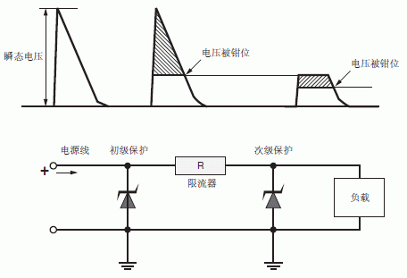 在特定的峰值脈沖電流定額下,TVS上會出現(xiàn)鉗位電壓。TVS的擊穿電壓在非常小的電流下測得(例如1mA或10mA),它不同于應(yīng)用條件下的實際雪崩電壓。因此,半導(dǎo)體制造商所標(biāo)注的是在大電流下的典型或最大擊穿電壓。