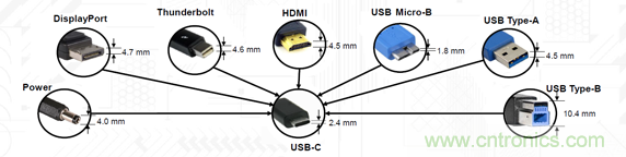 圖1:標(biāo)準(zhǔn)USB-C接口可以替代消費(fèi)類設(shè)備中的多個(gè)其他接口