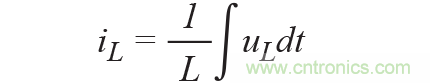 在這個例子中,導(dǎo)通時間內(nèi)電感兩端的電壓約為44.7 V,開關(guān)節(jié)點一側(cè)的電壓為48 V,輸出端電壓為3.3 V。電感電流通過以下公式計算:
