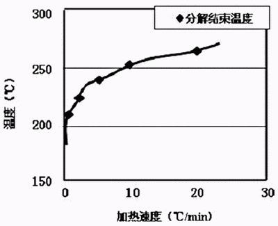 圖6有機外殼分解結(jié)束溫度與加熱溫度的關(guān)系
