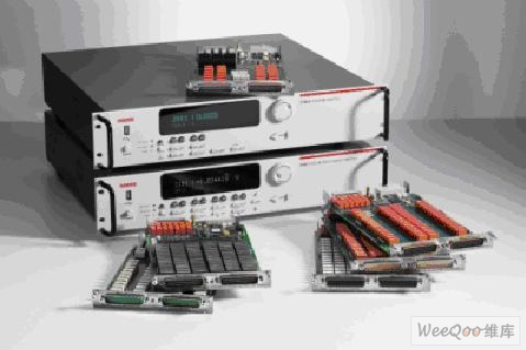 線纜和印制電路板的絕緣電阻測試或者耐壓測試通常都涉及高電壓的開關切換。為了避免損壞開關卡,在開關切換200V以上的電壓時必須十分謹慎,要選擇額定指標符合所需電壓與功率大小的開關卡,例如用于3706型系統開關/萬用表(如圖3所示)的吉時利3720型雙1x30多路復用卡,以及額定指標合適的線纜。如果可行,采用冷開關的方式可以延長繼電器的壽命,增大所容許的電流。