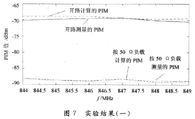 由以上的分析可知,這種計算方法計算出來的PIM值和真實(shí)的PIM值十分接近,并且隨頻率的變化趨勢一致。同時可以看出,在開路的時候所測量的 PIM明顯要比接負(fù)載的時候所測量的PIM要大,增大的PIM值是因?yàn)槠ヅ洳缓盟斐?,?dāng)然,相同的負(fù)載狀況在不同的頻率下呈現(xiàn)的匹配狀態(tài)是不一樣的。