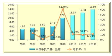 2006-2013年中國(guó)手機(jī)產(chǎn)量及未來(lái)發(fā)展趨勢(shì)