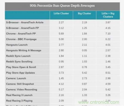 測(cè)試者對(duì)16個(gè)不同的場(chǎng)景進(jìn)行測(cè)試,并且每個(gè)場(chǎng)景的表現(xiàn)都通過(guò)圖表體現(xiàn)了出來(lái)。從圖片結(jié)論中我們可以看出,核心越多,設(shè)備表現(xiàn)就越好,尤其是在電源和負(fù)載的分配上。我們看到,四核處理器要比雙核更高效,而兩個(gè)單獨(dú)的核心群要比一個(gè)更大的核心表現(xiàn)更好。