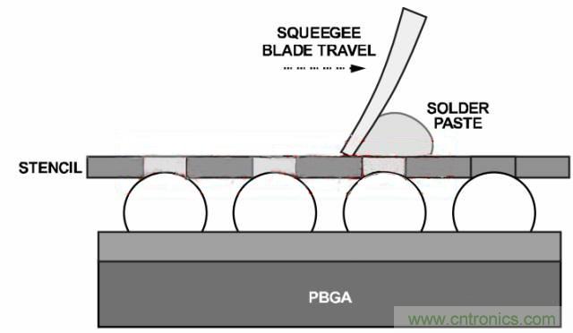 圖8. 焊膏模板將焊膏印制到焊球上