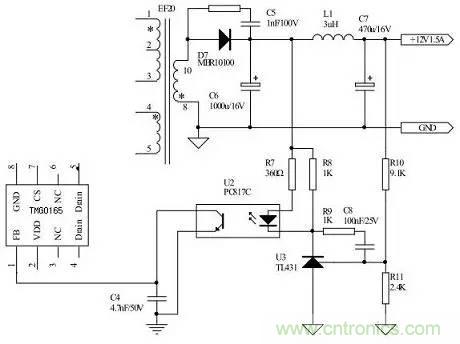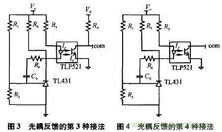 本研究將詳細(xì)分析光耦工作原理,并針對(duì)光耦反饋的幾種典型接法加以對(duì)比研究。1、常見的幾種連接方式及其工作原理常用于反饋的光耦型號(hào)有TLP521、PC817等。這里以TLP521為例,介紹這類光耦的特性。TLP521的原邊相當(dāng)于一個(gè)發(fā)光二極管,原邊電流If越大,光強(qiáng)越強(qiáng),副邊三極管的電流Ic越大。副邊三極管電流Ic與原邊二極管電流If的比值稱為光耦的電流放大系數(shù),該系數(shù)隨溫度變化而變化,且受溫度影響較大。作反饋用的光耦正是利用“原邊電流變化將導(dǎo)致副邊電流變化”來(lái)實(shí)現(xiàn)反饋,因此在環(huán)境溫度變化劇烈的場(chǎng)合,由于放大系數(shù)的溫漂比較大,應(yīng)盡量不通過(guò)光耦實(shí)現(xiàn)反饋。此外,使用這類光耦必須注意設(shè)計(jì)外圍參數(shù),使其工作在比較寬的線性帶內(nèi),否則電路對(duì)運(yùn)行參數(shù)的敏感度太強(qiáng),不利于電路的穩(wěn)定工作。通常選擇TL431結(jié)合TLP521進(jìn)行反饋。這時(shí),TL431的工作原理相當(dāng)于一個(gè)內(nèi)部基準(zhǔn)為2.5V的電壓誤差放大器,所以在其1腳與3腳之間,要接補(bǔ)償網(wǎng)絡(luò)。TL431是三端可編程并聯(lián)穩(wěn)壓二極管