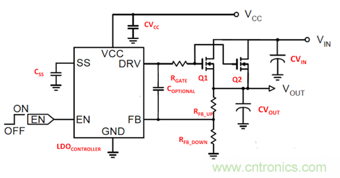 圖3:低壓降控制器驅(qū)動雙通道FET