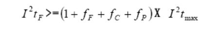 在這里,我們重點(diǎn)分析第(1)點(diǎn)。實(shí)際選用的熔斷器的I^{2}t_{F}值,即相應(yīng)于電流浪涌I2tmax最大值處的熔斷器的I2t值, 應(yīng)該滿足: