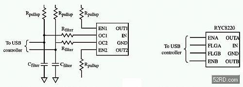 在匯流排供電的集線器、雙模式的集線器以及低功率主機(jī)中,PowerSwitch元件是最為常用的解決方案。這種元件還可用于USB設(shè)備中作為沖擊電流限制元件。PowerSwitch元件內(nèi)置了包括電源開關(guān)功能的電流限制功能,提供較低的導(dǎo)通電阻和快速的電流限制特性。這些特性均有其應(yīng)用在功率有限的主機(jī)中。在這種主機(jī)中加入電源開關(guān)功能,就可以通過關(guān)閉出現(xiàn)故障的埠端來作最大限度地節(jié)省能量。