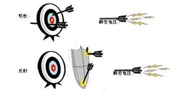 簡(jiǎn)而言之,SPD 會(huì)阻止具有破壞性的瞬變電壓浪涌電平到達(dá)所保護(hù)的設(shè)備。SPD 通過(guò)吸收過(guò)剩的電壓、將其分流或者組合使用這兩種手段,達(dá)到削弱浪涌電壓的目的。圖 1顯示了飛向靶子的箭。靶子代表 SPD,而箭代表瞬變電壓尖峰脈沖。當(dāng)箭擊中靶子時(shí),它會(huì)被吸收并滯留在靶子中。然而,靶子的厚度將決定箭是否可以在沒(méi)有穿到另一側(cè)時(shí)停止。同樣,在這種模式下,箭將不停地?fù)p壞靶子,將來(lái)靶子可能無(wú)法很好地阻止箭?,F(xiàn)在,假設(shè)在靶子前面有一個(gè)金屬盾牌。箭發(fā)出后,它會(huì)擊中盾牌,無(wú)任何損害地彈飛到靶子的旁邊。這就是大多數(shù) SPD 的基本工作原理。SPD 吸收能量(并且根據(jù)它們的質(zhì)地好壞,可以防止浪涌,但仍然會(huì)受到損壞),或者將電壓分流到設(shè)備接地線中。在大多數(shù)情況下,SPD 會(huì)將吸收和分流瞬變電壓浪涌的設(shè)備組合使用。