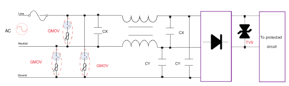 2、110 AC 交流電源雷擊浪涌保護(hù)應(yīng)選用壓敏電壓為200V~300V 的壓敏電阻較合適