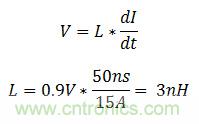 用電子負載測試電源的瞬態(tài)響應很常見。對許多系統(tǒng)軌(如服務器的3.3V或5V總線)而言,電子負載很容易配置為在2-10A/us的范圍內(nèi)汲入電流的模式。但是,內(nèi)核電壓可能需要轉換速率比這些水平高兩個數(shù)量級。高轉換速率測試中的一個主要限制因素是負載路徑中的寄生電感。要以300A/us的速率為0.9V輸出轉換15A的電流,公式1計算出的最高電感是3nH。作為參考,成圈狀通過電流探頭的16級導線的1英寸片可將20nH的電感添加到負載路徑中。很明顯,需要另一種電流汲入方法。