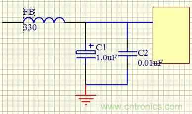 在輸入電源上,數(shù)字電路干擾是一個(gè)一個(gè)小尖峰,不能用大電容濾波,只能用小電容;濾波電容一大一小(小電容濾除高頻干擾,大電容濾除低頻干擾)一定要放在根部,不要放太遠(yuǎn),也不要放在電路板背面。