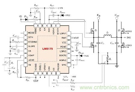 圖2.具有電流模式控制器的4開關(guān)降壓-升壓轉(zhuǎn)換器的電路原理圖。