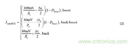 下一步,斜坡補(bǔ)償獲得感測(cè)到的信號(hào),并且在降壓模式中,增加一個(gè)等于電感器斜升的斜坡分量,或者在升壓模式中增加一個(gè)與電感器漸降相等的斜坡分量。方程式3中給出了斜坡電容[4] 的計(jì)算方式