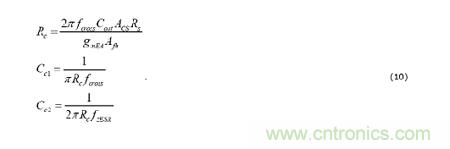 小信號(hào)控制環(huán)路補(bǔ)償性能由2個(gè)基礎(chǔ)波特圖度量標(biāo)準(zhǔn)測(cè)定:交叉頻率和相位裕量。由RC和CC1決定的補(bǔ)償器零頻率提供交叉頻率之前的相位提升。位于輸出電容器ESR零點(diǎn)附近(或者是開關(guān)頻率的一半,以低者為準(zhǔn)),隨CC2建立起來(lái)的一個(gè)極點(diǎn)提供噪聲衰減,并且盡可能地將到COMP節(jié)點(diǎn)的輸出紋波傳播降到最低。使用以下方程式選擇補(bǔ)償組件: