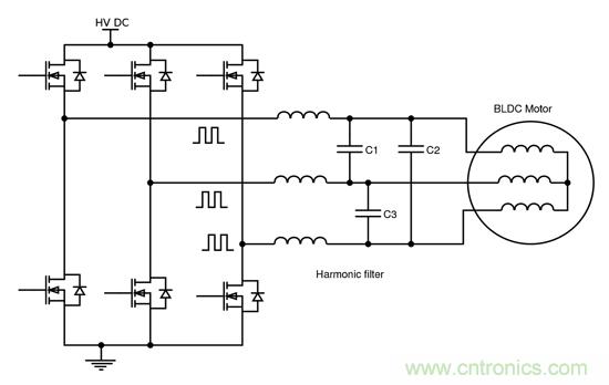 圖4:電機(jī)驅(qū)動(dòng)EMC濾波中的薄膜電容器。