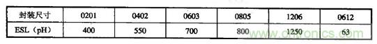 不同封裝下電容的電感分量