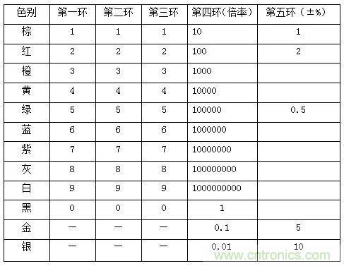 五環(huán)電阻如何進(jìn)行讀數(shù)操作?這個(gè)表格一定要掌握。