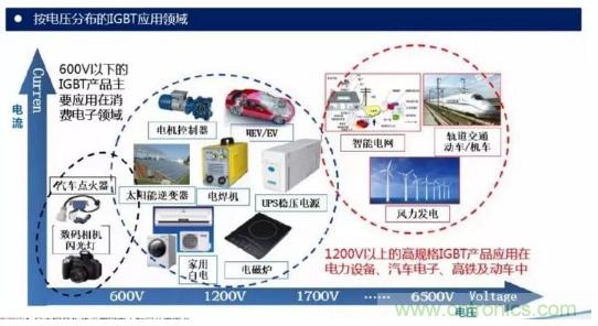 作為新型功率半導(dǎo)體器件的主流器件,IGBT已廣泛應(yīng)用于工業(yè)、 4C(通信、計算機、消費電子、汽車電子)、航空航天、國防軍工等傳統(tǒng)產(chǎn)業(yè)領(lǐng)域,以及軌道交通、新能源、智能電網(wǎng)、新能源汽車等戰(zhàn)略性新興產(chǎn)業(yè)領(lǐng)域。
