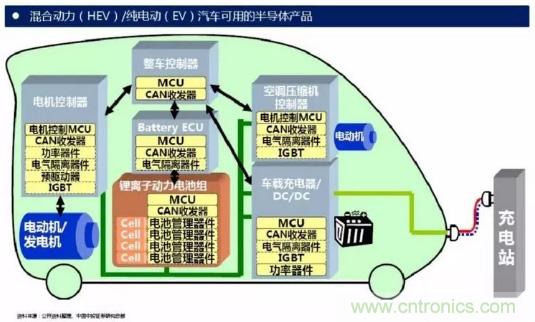 IGBT模塊在電動汽車中發(fā)揮著至關(guān)重要的作用,是電動汽車及充電樁等設(shè)備的核心技術(shù)部件。IGBT模塊占電動汽車成本將近10%,占充電樁成本約20%。IGBT主要應(yīng)用于電動汽車領(lǐng)域中以下幾個方面:
