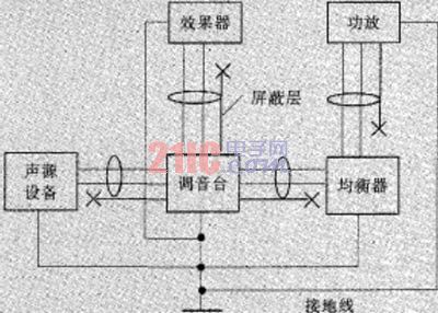 在音頻系統(tǒng)中,必須要求整個系統(tǒng)有良好的接地,接地電阻要4歐姆。否則音頻系統(tǒng)中設(shè)備由于各種輻射和電磁感應(yīng)產(chǎn)生的感應(yīng)電荷將不能夠流入大地,從而形成噪聲電壓疊加到音頻信號中。