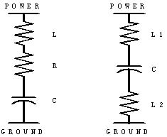 連接在電源和地之間的電容的阻抗可由如下公式計算:,電容濾波的目的是濾除疊加在電源系統(tǒng)中的交流成分,從上面的公式可以看出,當(dāng)頻率一定時,電容值越大,回路中的阻抗就越小,這樣交流信號就越容易通過電容流到地平面上去,換句話說,即似乎電容值越大其濾波效果越好,事實(shí)上并非如此,因?yàn)閷?shí)際電容并不具有理想電容的所有特性。實(shí)際電容存在寄生成分,這是構(gòu)造電容器極板和引線時所形成的,而這些寄生成分可等效為串聯(lián)在電容上的電阻與電感,通常稱之為等效串聯(lián)電阻(ESR)和等效串聯(lián)電感(ESL),其模型如圖2的左半部分所示。如果忽略電容的寄生電阻則模型可等效為圖2的右半部分。這樣電容實(shí)際上就是一個串聯(lián)諧振電路。在實(shí)際的電路或者PCB設(shè)計中,電容寄生電感的存在將對電容的濾波性能帶來很大的影響,因此在系統(tǒng)設(shè)計時應(yīng)該選擇寄生電感比較小的電容。