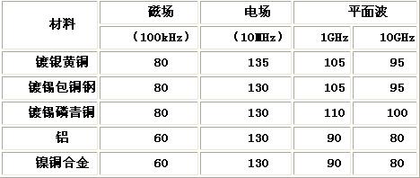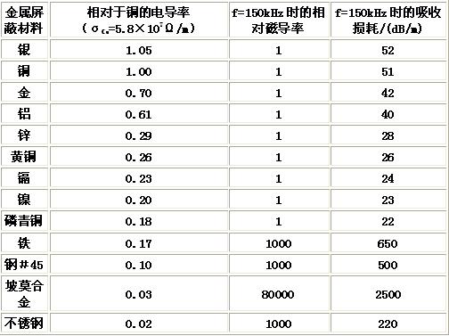 表2 各種金屬屏蔽材料的性能[page]