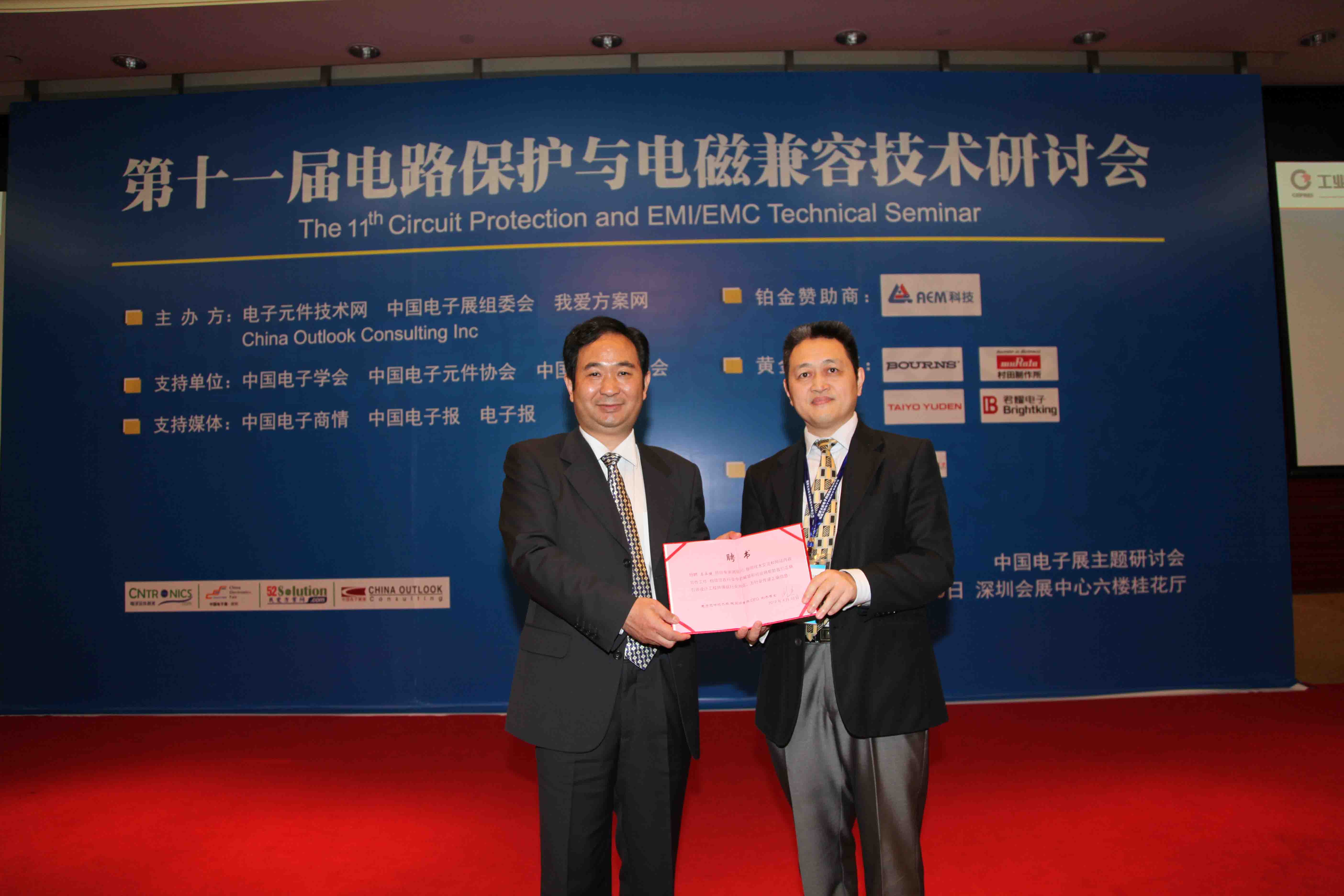 由電子元件技術網(wǎng)(www.jiaoyuye.cn)攜手中國電子展、我愛方案網(wǎng)(www.52solution.com)和China outlook consulting主辦的第十一屆新電路保護與電磁兼容技術研討會于4月10日在深圳會展中心六樓水仙廳勝利召開!