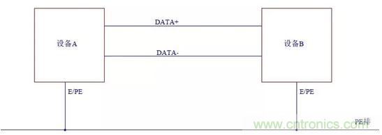 如下圖所示,如果兩個設(shè)備的零電位沒有很好的連接,即使設(shè)備A輸出的電壓信號是穩(wěn)定的,當設(shè)備B的輸入端接收到時也會變?yōu)椴环€(wěn)定的。