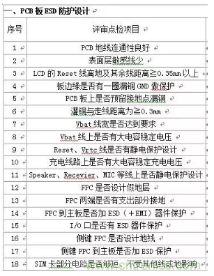 一般電子產(chǎn)品設(shè)計時不考慮EMC問題,就會導(dǎo)致EMC測試失敗,以致不能通過相關(guān)法規(guī)的認(rèn)證。下圖概述了EMC、EMI、ESD評審的要點(diǎn)。