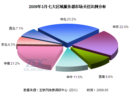 (圖)2009年3月七大區(qū)域服務(wù)器市場(chǎng)關(guān)注比例分布