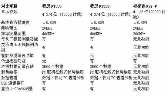 以Faith費(fèi)思的工業(yè)用真有效值萬用表FT330系列和美國福祿克的工業(yè)用萬用表F87-V一比較就可以看出國產(chǎn)品牌的優(yōu)勢: