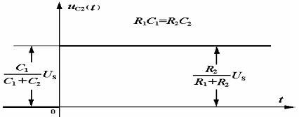 討論到這里,對(duì)于無(wú)源探頭的輸入模型大家應(yīng)該有了一定的了解,那為什么為了精確地測(cè)量,兩個(gè)RC時(shí)間常量(RpCp和R1C1)必須相等,測(cè)量前需要校準(zhǔn)呢?我們可以再進(jìn)一步簡(jiǎn)化探頭模型為一個(gè)更簡(jiǎn)單的阻容分壓電路如下: