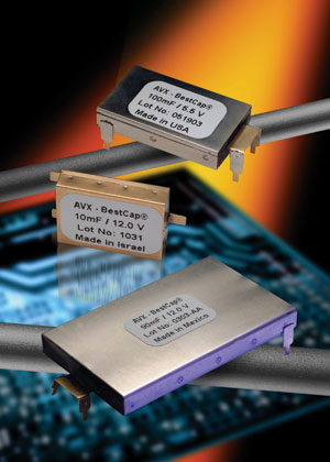 脈沖超級電容器的封裝也在不斷發(fā)展,主要朝向小占板面積和低高度方向。例如,AVX的BestCap®系列超級電容器大約8年前就面市了,包括了具有標(biāo)準(zhǔn)28mm×17mm尺寸和48mm×30mm大尺寸的型號,厚度范圍是2.0mm~6.0mm。目前,已經(jīng)開發(fā)出了小尺寸(20mm×15mm)的型號,更加微小尺寸(15mm×12mm)的型號也正在開發(fā)中(見圖1)。這些超級電容的結(jié)構(gòu)是非常堅固的,具有精密鋼質(zhì)外殼。所有內(nèi)部單元部件都采用環(huán)保材料、無有機(jī)溶劑的水溶性材料制造,這些相同的單元部件會構(gòu)成單元陣列。由于采用實體封裝和相同的結(jié)構(gòu),可以承受超過1000g的重力加速度沖擊,而且這些內(nèi)部單元的工作溫度范圍是-40~+75℃。