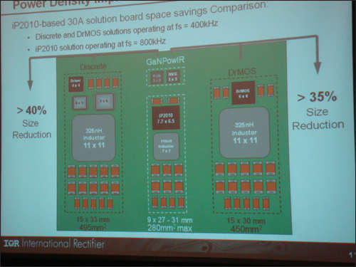 采用分立器件,GaNpowIR技術(shù),DrMOS方案功率密度比較