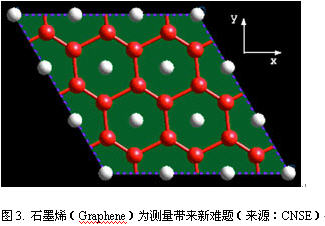 石墨烯是一種穩(wěn)定材料,也是一種禁帶寬度幾乎為零的半金屬/半導(dǎo)體材料。它具有比硅高得多的載流子遷移率(200000cm2/V),在室溫下有微米級(jí)的平均自由程和很長的相干長度。因此,石墨烯是納米電路的理想材料,也是驗(yàn)證量子效應(yīng)的理想材料。然而這種材料也非常難以測(cè)量(圖3)。石墨稀顯微鏡是測(cè)量該新材料的必要手段。關(guān)鍵問題之一是單個(gè)樣品和多層樣品中石墨稀的層數(shù)。TEM和低能電子顯微鏡(LEEM)是確定層數(shù)的重要檢測(cè)設(shè)備,多層切片模擬式確定TEM檢測(cè)能力和成像條件的有效方式。LEEM可以檢測(cè)層數(shù)及樣品的形貌。