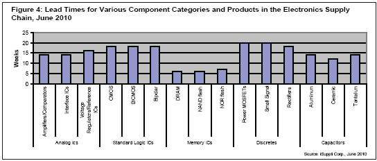 圖4所示為電子供應鏈中各類元件類別與產(chǎn)品類型的交貨期對比。