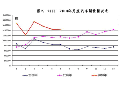 2010年上半年,汽車產(chǎn)銷市場增速自3月以來呈逐月回落態(tài)勢,但總體保持較高增長勢頭;汽車行業(yè)整體經(jīng)濟效益保持良好的發(fā)展態(tài)勢。