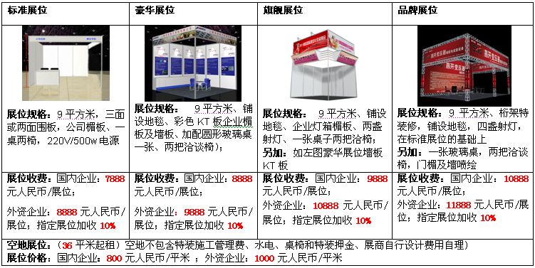 1、各種展位價(jià)格表