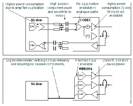 圖1:WM8994采用以應(yīng)用為中心的調(diào)制解調(diào)器架構(gòu)。