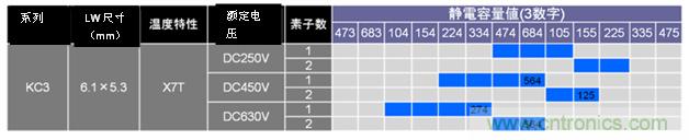 GCJ系列、KCM/KC3系列的125°C對應(yīng)產(chǎn)品一覽如圖13、圖14、圖15所示。