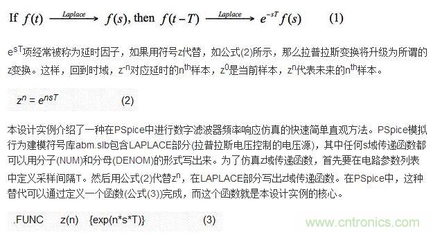 舉例來說,如果用分子或分母形式將z(-10)寫下來,PSpice將用e-10sT替代z(-10) (s是LAPLACE部分使用的拉普拉斯變量)。公式(3)可以放在包含文件中,或更方便地放在新原理圖模板FUNCTIONS中。